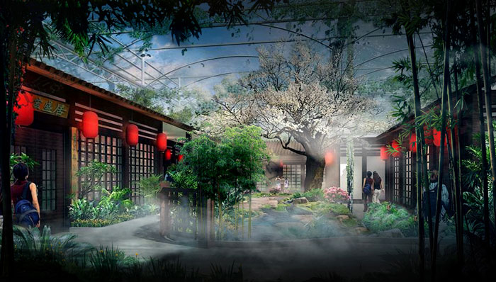 生态酒店、生态园的策划,通过综合周围的资源与环境,打造景色优美,环境舒适的休闲住宿场所。生态酒店常常以绿色、生态、舒适为主题,通过空间轮廓、群体组合、造型与色彩的结合,让城市中的人们在有限的空间内有更多的机会接触“大自然”。而作为生态酒店设计的基本设施,温室是一个典型的生态环保建筑,在很大比例上做到了节能降耗,这也是目前国际餐饮业所要发展的趋势。生态园、生态酒店设计追求的就是这种创造“天地人合一”的完美境界,我们的设计将野趣与奢华相结合,创造富于变幻的空间,营造自然优雅的休闲商务场所。
