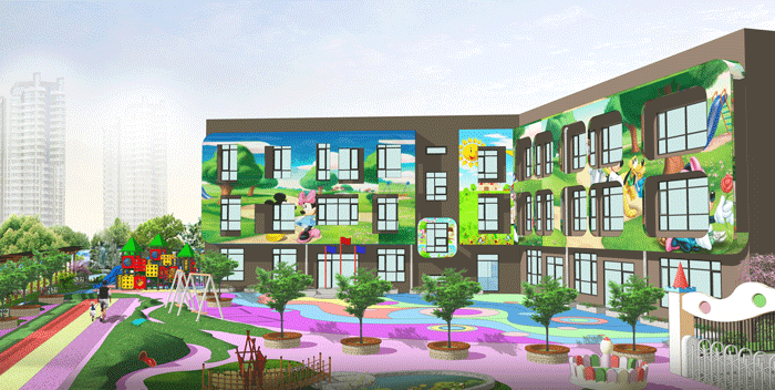 近年来幼儿教育受到重视,因此幼儿园的环境显得更加重要。大多数幼儿园不再局限于幼儿园的室内墙饰,而是扩展到了整个空间和外部环境,注重其艺术性的对比与风格的协调统一,增强了整体环境的艺术性、教育性、科学性和趣味性,我们根据幼儿的身心成长和保育功能进行合理化的设计,在切实满足幼儿娱乐、学习、生活等各方面需要的同时,打造出充满活力的幼儿园环境。我们通过艺术装饰的主题、形式、色彩等信息,逐渐去建构幼儿的知识体系,激发他们的好奇心和求知欲,使幼儿生活的环境充满童真。